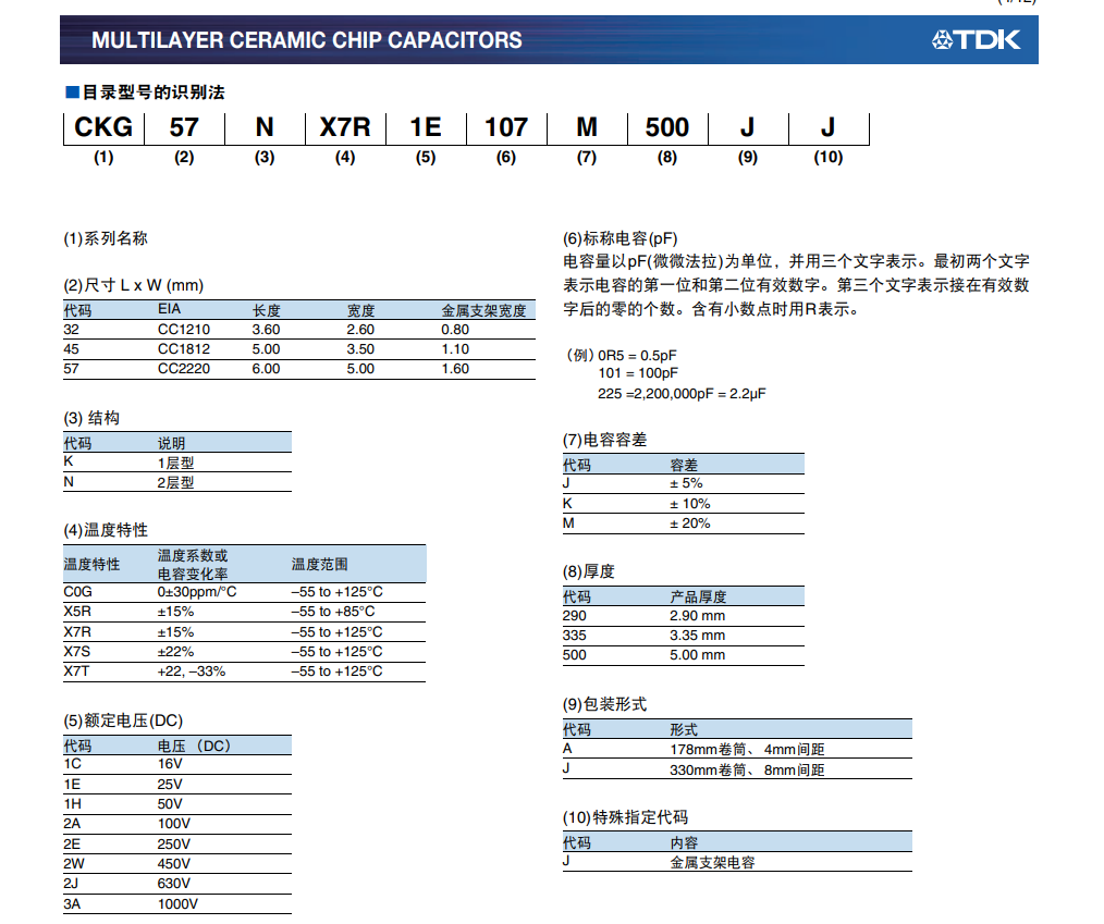 tdk积层贴片陶瓷电容