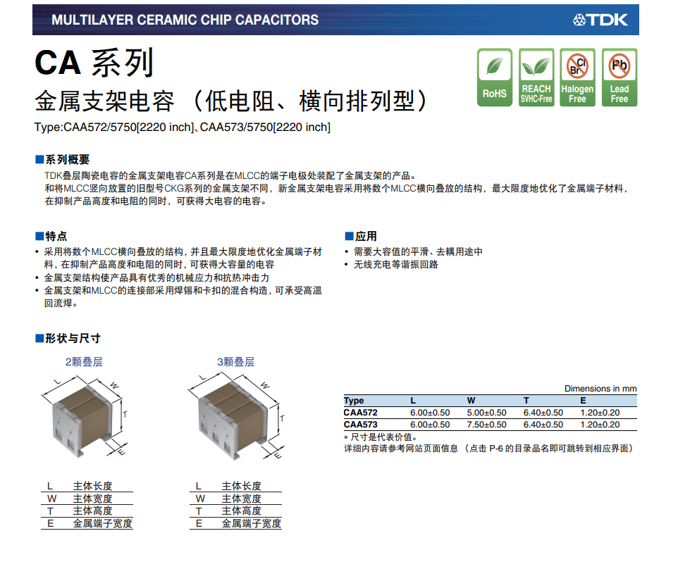 应用领域:需要大容值的平滑、去耦用途中 • 无线充电等谐振回路